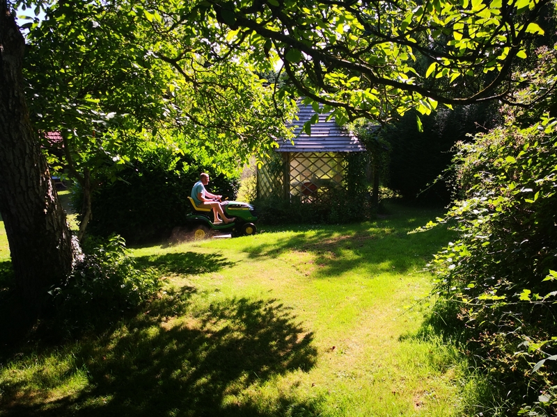 En natuurlijk is het gras gemaaid en wordt het zwembad opgezet. Maar eer dat vol is, zijn we vijf uur verder…